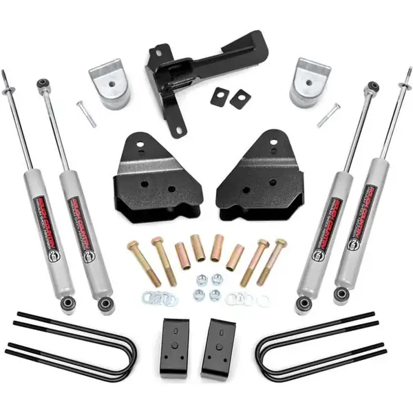 A set of Rough Country's premium N3 shocks are also included. These fine tuned 10-stage variable high-pressure Nitrogen charged shocks offer a fantastic blend of off-road action and smooth highway ride quality. With a durable 18mm spring-loaded piston rod and faster-cooling 54mm shock body.