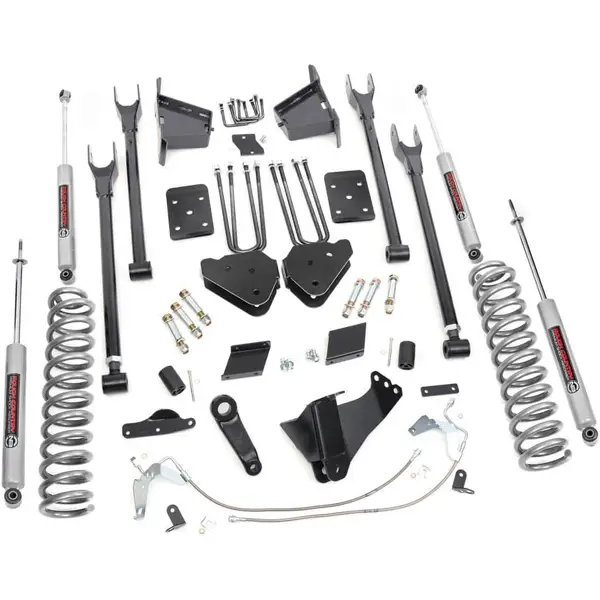 Gain greater travel and improved handling while adding ground clearance and aggressive style with Rough Country’s 4-Link F-250 Lift Kit.