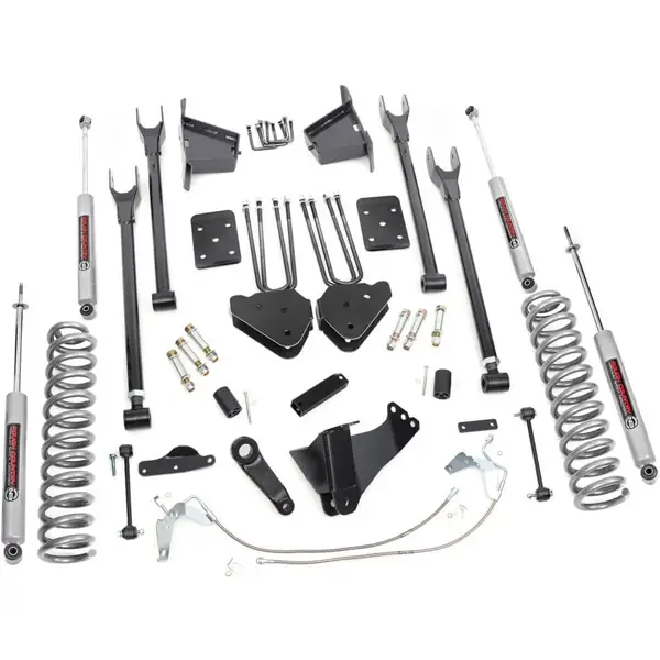 Compliment your 08-10 Ford F-250/350's aggressive, good looks with Rough Country's 4-Link Suspension Lift System. Rough Country's 8-inch Lift Kit was engineered to retain the F-250/350's impressive factory specs while bumping up performance and durability where it's needed most. The result is an aggressive, lifted beast with a mean profile and balanced on and off-road ride quality.
