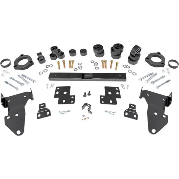 Gain enough ride height to run up to 265/70 R17 tires with this blend of two different Rough Country kits! This easy-to-install kit offers a big boost in ground clearance while retaining the factory look and feel. Each kit includes a bumper relocation system to ensure the bumper and body sit flush after lifting – further preserving the nicer parts of the factory design.