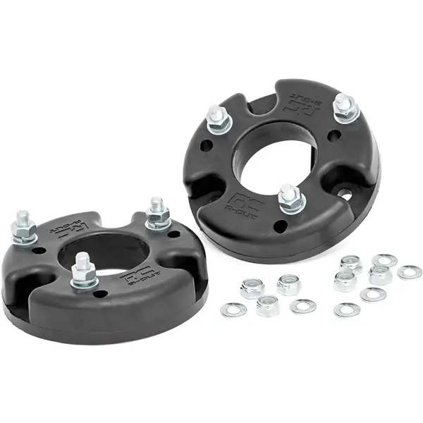 Upgrade your stance with Rough Country's 2" Bolt-On Leveling Kit for the Ford F-150. This sleek and rugged spacer delivers 2 inches of front lift, giving your truck the clearance needed to run up to 33-inch tires - all while maintaining your factory ride quality and handling.