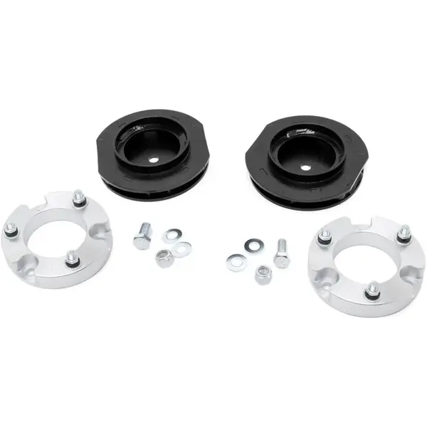 This kit includes a set of lifted coil spring spacers and strut extensions to provide enough ride height to run larger wheels and tires. With a 100% bolt-on installation process, this kit is easy to install in a home garage with common tools. Includes Rough Country’s Lifetime Replacement Warranty.