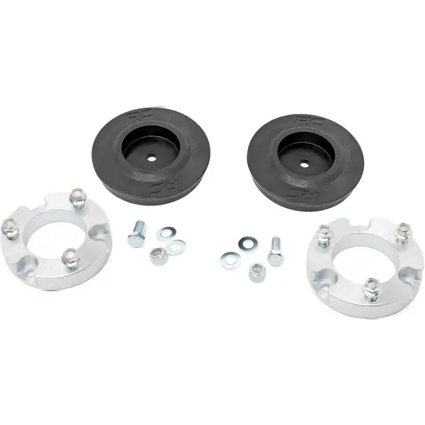 This kit includes a set of lifted coil spring spacers and strut extensions to provide enough ride height to run larger wheels and tires. With a 100% bolt-on installation process, this kit is easy to install in a home garage with common tools. Includes Rough Country’s Lifetime Replacement Warranty.
