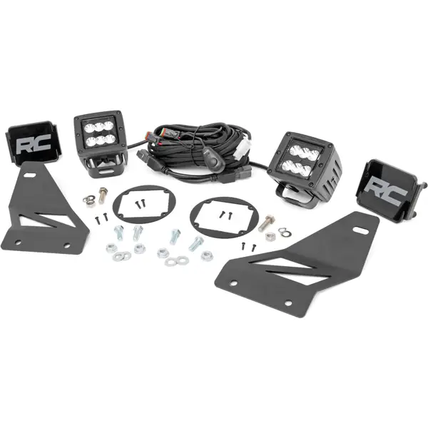 Rough Country's 2-Inch Fog Light LED Kit delivers cutting-edge power and efficiency. This innovative LED and mount combo replaces your factory fog lights-or fog light blanks-with high-performance 2-inch LED Cubes, producing an impressive 4,800 lumens while seamlessly blending with your vehicle's front-end design.