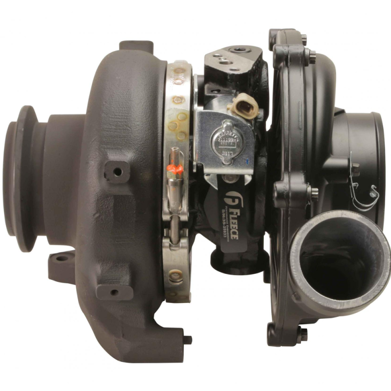 The Brand New NO CORE CHARGE Ford 6.0L VNT Cheetah Turbocharger is a drop-in replacement turbocharger for 2004.5-2007 6.0L Ford diesels. It comes with a Fleece Performance Engineered 63mm FMW compressor wheel and high flow 71mm Cheetah turbine wheel. This stock replacement turbo is guaranteed to enhance your driving experience. You’ll enjoy the spool up and throttle response of a small turbo and still get the big top end power you’re looking for. Rated at 700 RWHP this is the ultimate combination for dual purpose applications. If you are towing during the week, and sled pulling on the weekend, the 63mm FMW VNT Cheetah is just the ticket.