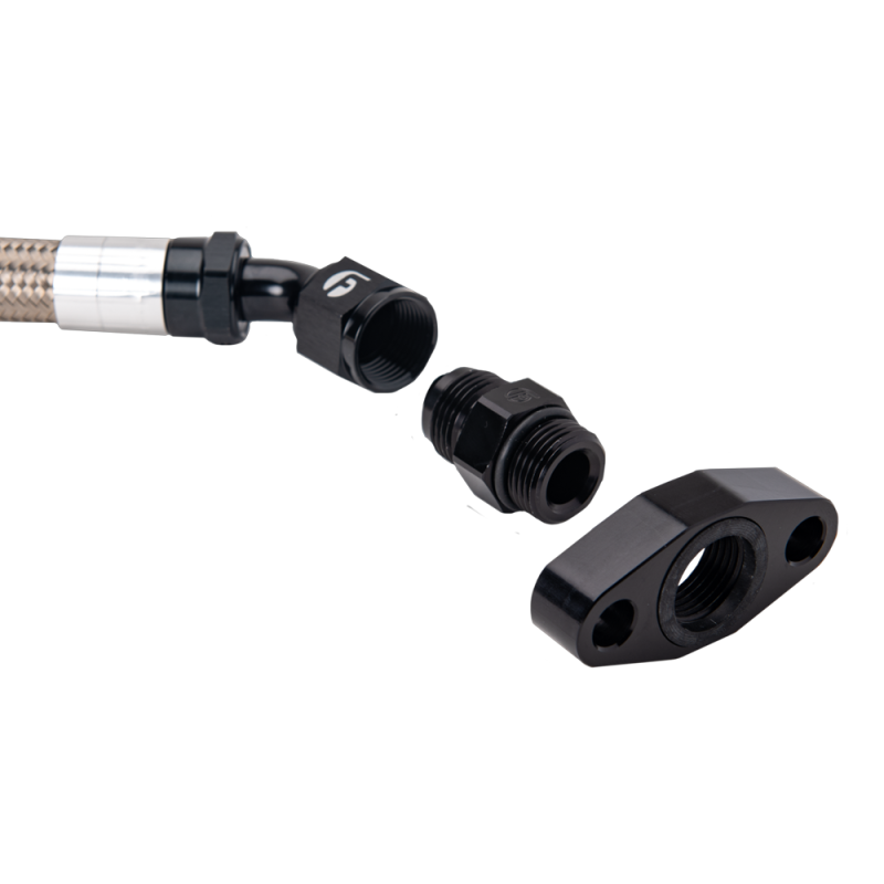 Put the finishing touches on your truck with this high quality Cummins Turbo Drain Tube Kit. The tube is braided stainless steel for durability on the exterior, and reinforced rubber tubing for flow and maximum flexibility. The fittings are 6061 aluminum with black anodize and come complete with o-rings. The kit contains everything you need to connect your turbo to the factory drain location on your block when doing a 2nd Gen Swap.