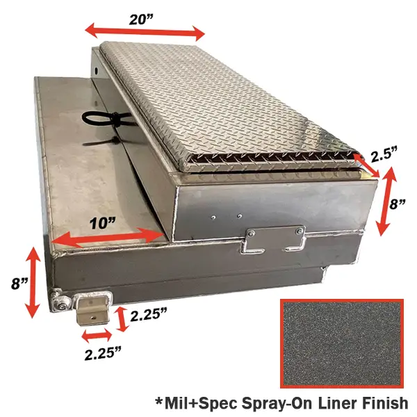 - Toolbox and heavy-duty lid constructed of .100 marine-grade aluminum with an extra-large lid stiffener.