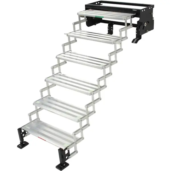 - Superior Stability & Safety: Eliminates the unstable "diving board" feel by connecting the RV to the ground, boasts the industry's shortest riser height (7.5 inches), and includes self-illuminating, no-slip SureGrip treads.
