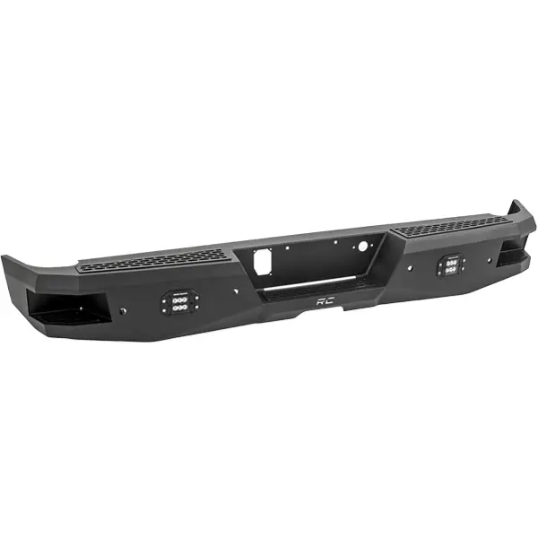 Give the rear of your truck an aggressive, new appearance with Rough Country’s Rear LED Bumper. This easy-to-install upgrade gives your truck an improved look and better functionality. Each bumper features two Rough Country Black-Series 2in LED Flush Mount Cubes for rear illumination, and two integrated steps for easy access to the bed. Rough Country’s Rear LED Bumper is made of a durable, all-steel construction that’s ready to handle whatever you dish out. Each bumper also includes sensor relocators to allow you to retain the vehicle’s anti-collision system. Unlike some aftermarket bumpers for this model, Rough Country’s LED Rear Bumper allows you to retain the factory receiver hitch for towing. Complete the look with Rough Country’s Front LED Bumper for a total transformation of your truck. Includes a 3-year Warranty!