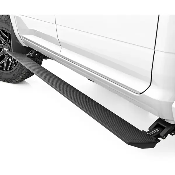 Sidesteps have come a long way, and now we've taken them to the next level with Rough Country's Power Running Boards! These retractable E-Boards tuck tight for a clean look when not in use and automatically extend when the door is opened. With an anti-slip surface that provides a secure stepping area, getting in and out of your ride has never been easier. Our Power Running Boards also include LED lights that provide illumination when deployed and shut off when steps are closed, providing a sleek, aerodynamic look.