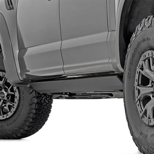 These easy-to-install steps are the perfect solution for getting in and out of your vehicle. No drilling is required for installation, and the steps tuck tight under the rocker panel when not in use. Don't struggle to get in and out of your vehicle anymore. Make life easier with Rough Country's Power Running Boards.