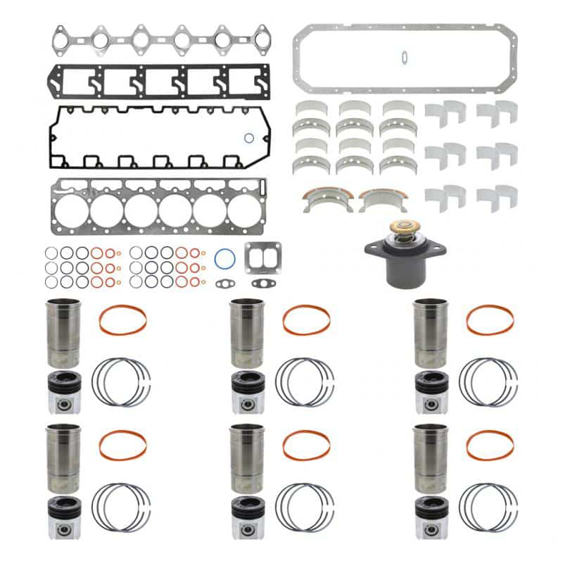 The image above is an "example" of the overhaul kit and may differ to your engine type. We send the kit that matches your engines needs. We may contact you to confirm Engine Serial number / Vin so get that ready to ensure compatibility. Please note we are not responsible for miss-ordering the wrong bore, bearing size, or engine model specific parts. There will be a restocking fee for exchanges of unused parts. All used parts can not be returned. Most class 8 / 9 truck rebuild kits come in two options In-Frame and Out-of-Frame / Complete overhaul kits. Below we explain what comes in each kit. It carries a one year warranty.
