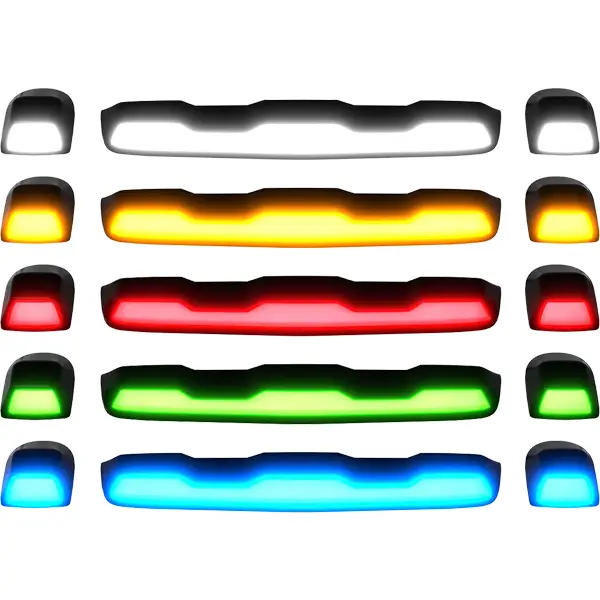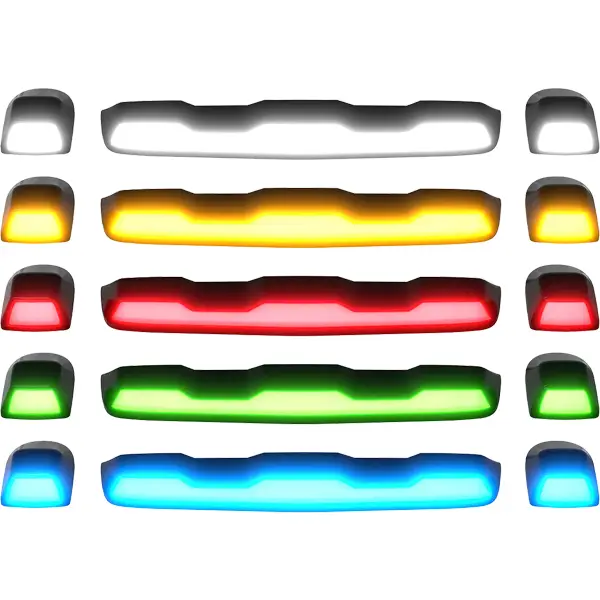 Elevate the safety and style of your 2020+ GMC Sierra or Chevy Silverado HD with the Recon 3-Piece Ultra Bright RGB Multi-Colored LED Cab Roof Light Kit. Designed as a direct replacement for factory/OEM cab roof lights, this high-performance kit significantly enhances visibility in various conditions with ultra-bright RGB LEDs. Enjoy full customization of colors, patterns, strobing effects, and brightness through an intuitive Bluetooth app. Available with smoked or clear lenses, this durable kit combines rugged functionality with a bold, modern look.