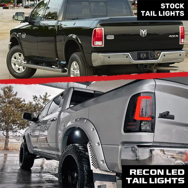 Upgrade the rear of your 2009-2024 Dodge RAM 1500 or 2014-2018 Dodge RAM 2500/3500 (models with factory/OEM LED tail lights) with these premium Recon OLED tail lights featuring a sleek smoked lens and vertical scanning OLED turn signals. Designed to turn heads with their dynamic and modern look, these tail lights are specifically for replacing OEM LED units. Built for durability with military-grade ABS plastic and an IP67 waterproof rating, installation is a straightforward plug-and-play process. Reverse light bulbs are not included.