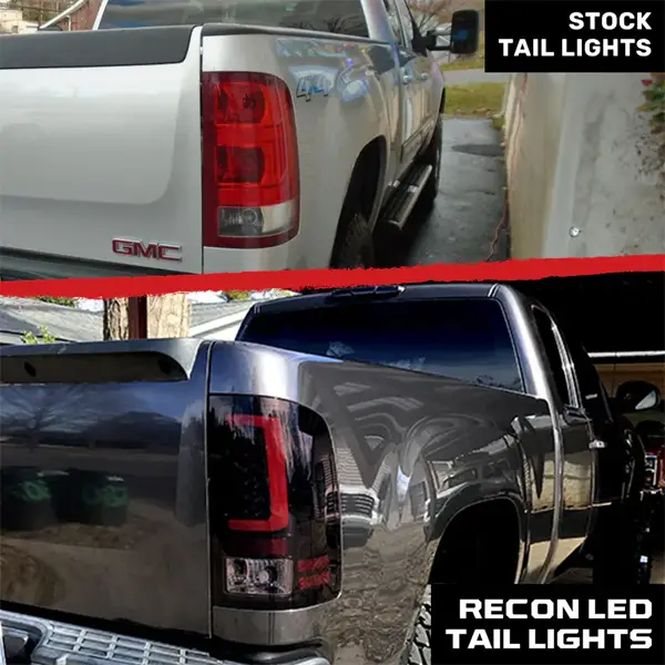 Upgrade the rear of your 2007-2013 GMC Sierra 1500, 2500, or 3500 (Single Wheel Trucks) with Recon ultra-bright OLED tail lights. Available in smoked, dark smoked red, red, and clear lens styles, these tail lights feature smooth OLED running lights and high-power LED brake lights for a sleek, modern look and enhanced visibility. These LEDs offer superior efficiency and a longer lifespan compared to outdated factory tail lights. Built with durable, military-grade ABS plastic and boasting an IP67 waterproof rating, installation is a straightforward plug-and-play process. Please note that reverse light bulbs are not included.