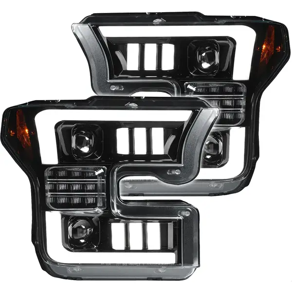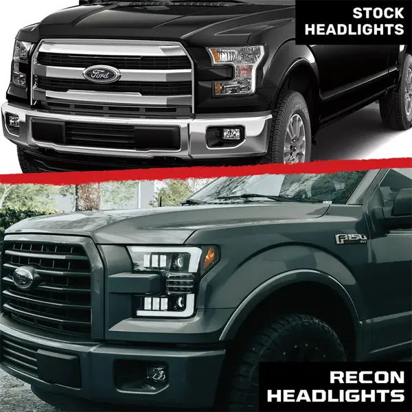 Upgrade the front of your 2015-2017 Ford F-150 with Recon LED Projector Headlights featuring 6000K full LED bulbs. Designed as direct replacements for factory LED headlights, these lights offer a modern and sleek look with ultra high-power smooth white OLED daytime running lights and scanning amber turn signals. These Recon LED headlights provide significantly improved visibility. Installation is a straightforward plug-and-play process