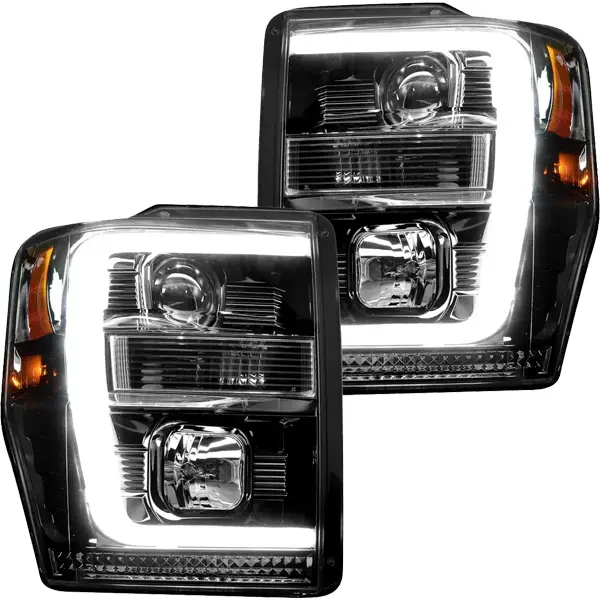 Upgrade the front of your 2008-2010 Ford Super Duty F250, F350, F450, or F550 with Recon OLED Projector Headlights featuring clear lenses. These headlights feature cutting-edge Ultra High Power Smooth OLED Halos and Daytime Running Lights, providing a modern and sleek look. These Recon headlights are a perfect fit and come with four standard halogen bulbs pre-installed.
