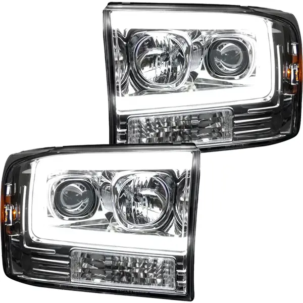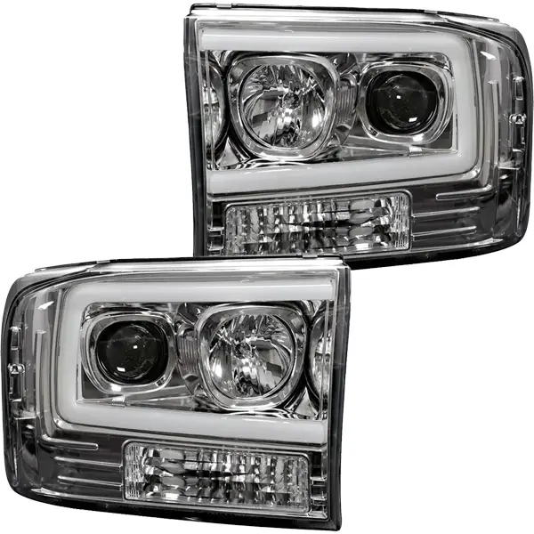 Upgrade the front of your 1999-2004 Ford Super Duty F250, F350, F450, or F550 with Recon Projector Headlights. These headlights feature Ultra High Power Smooth OLED Halos and Daytime Running Lights, providing a modern and sleek look. These Recon headlights are a perfect fit and come with four standard halogen bulbs pre-installed.