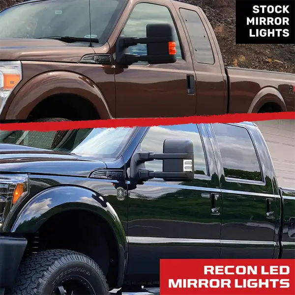 Recon Ford LED Side Mirror Lens(w/ White or Amber LEDs, & Smoke or Clear Lens) | 264140 | 2008-2016 Ford Super Duty