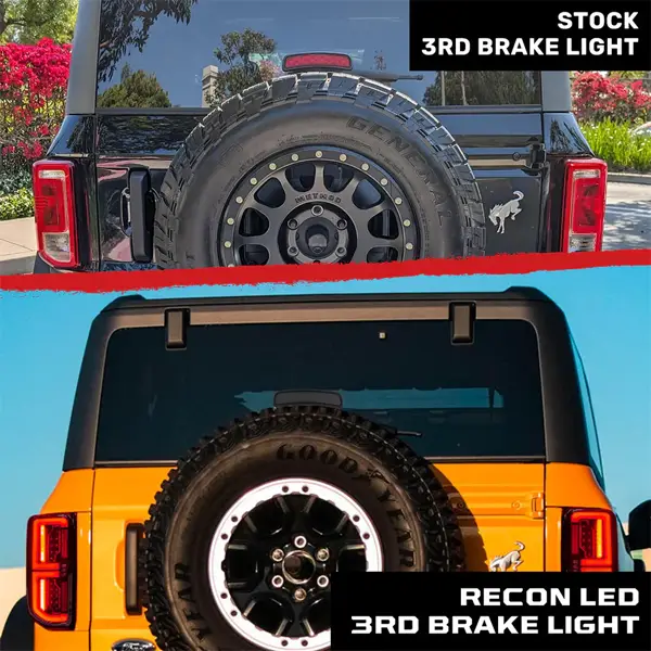 RECON Ford 2021+ Bronco Ultra High Power Red LED 3rd Brake Light Kit - Clear or Smoked Lens.