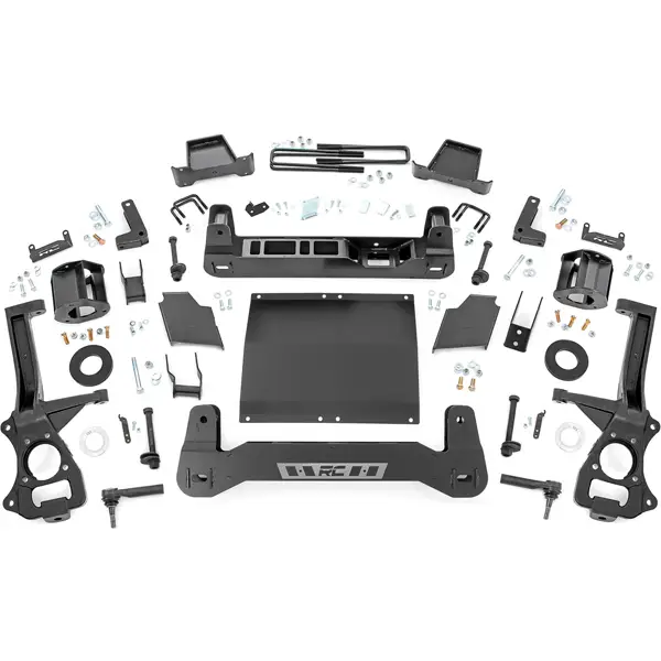Rough Country's 6-Inch Suspension Lift retains the factory track width, providing a precise and stable ride while allowing room for 35x12.50 tires on 10-inch wide wheels with 4.5-inch backspacing. Built for extreme durability, the heavy-duty cast knuckles provide lasting strength, while fabricated blocks outperform cast blocks for superior longevity. Plus, with precision-engineered, laser-cut materials, this lift kit ensures a perfect fit and uncompromising reliability.